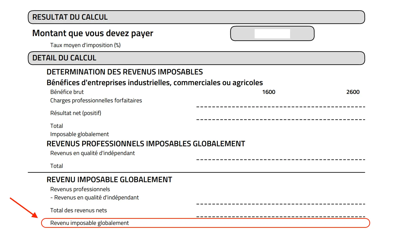Repérez la ligne intitulée : Revenu imposable globalement